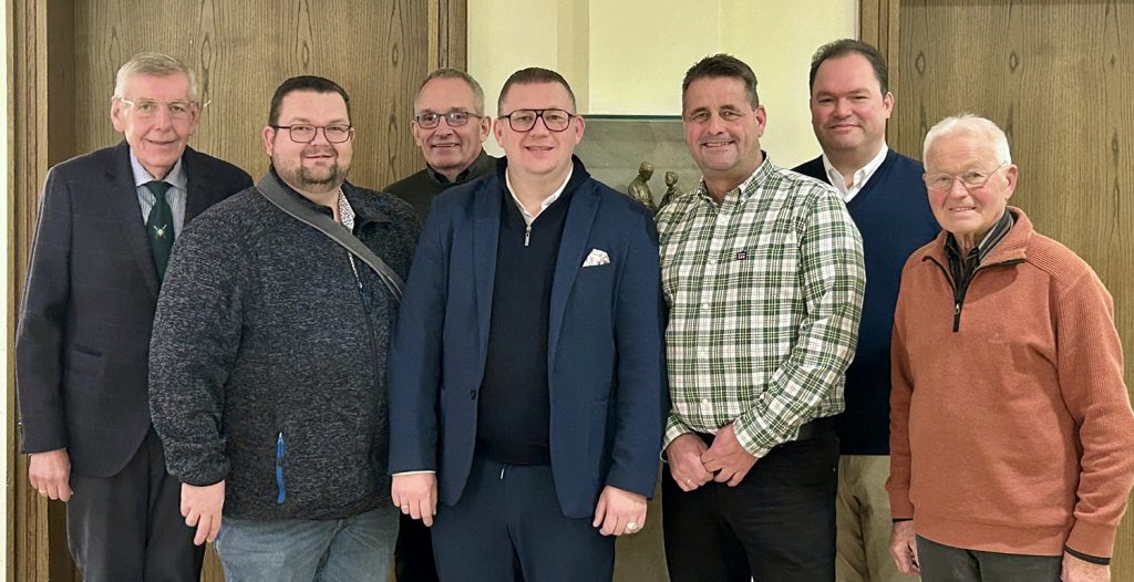 Geschäftsführer Lukas Laukötter, neuer Ehrenoberst Bernd Feldmann, neuer Vorsitzender David Heese, neuer Oberst